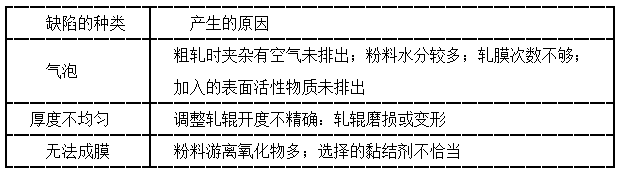 表1 軋膜成型坯體的主要缺陷及產生原因